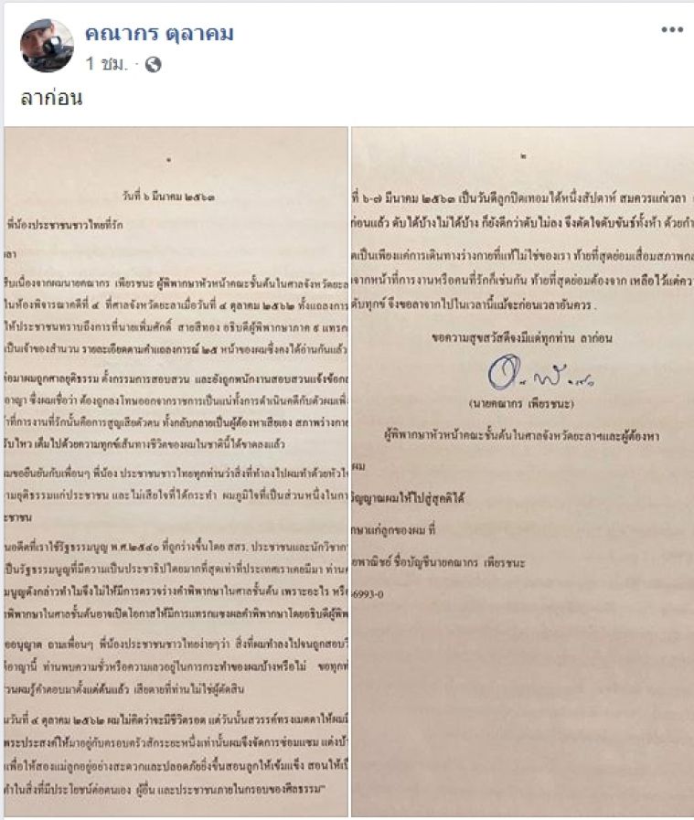 7 มีนาคม 2563 นายคณากร เพียรชนะ ผู้พิพากษาหัวหน้าคณะศาลชั้นต้นในศาลจังหวัดยะลา ซึ่งเคยก่อเหตุยิงตัวเองภายในศาลจังหวัดยะลา เมื่อเดือนตุลาคม 2562 ได้ก่อเหตุยิงตัวเองอีกครั้งในพื้นที่ อ.ดอยสะเก็ด จ.เชียงใหม่