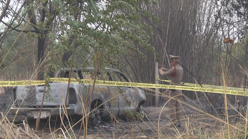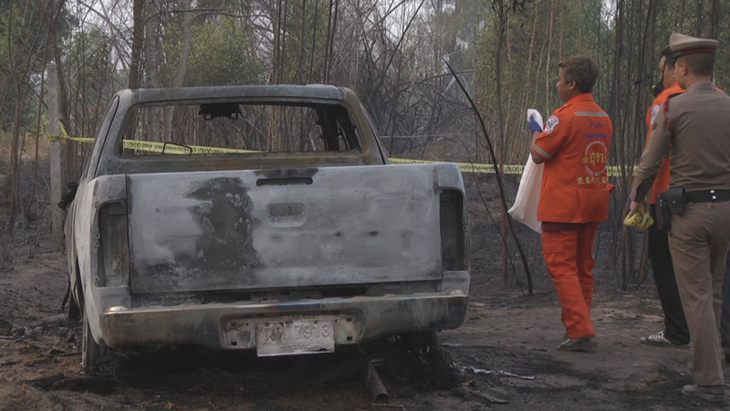 ชาวบ้านจุดไฟเผาป่า ลุกลามไหม้รถที่จอดซ่อนอยู่ริมไร่มันสำปะหลัง ผงะพบศพหนุ่มใหญ่ไหม้ดำเป็นตอตะโกในรถ คาดรมควันฆ่าตัวตาย