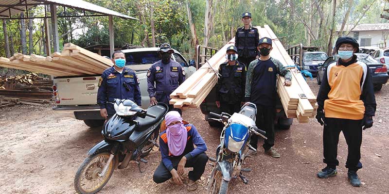 3 เมษายน 2563 เมื่อเวลา 15.00 น. นายธเนศ บัวแก้ว หัวหน้าหน่วยป้องกันรักษาป่าที่ อจ.2 อ.ชานุมาน จ.อำนาจเจริญ นายประมูล ปัสสาคำ พนักงานพิทักษ์ป่า ร่วมกับนายวันชัย เกตุแก้ว นายอำเภอชานุมาน พ.ต.อ.นิติธร แสงย้อย ผกก.สภ.ชานุมาน พ.ต.ต.คมสันต์ คำวัน สว.สส. ร.ต.อ.สง่า หลงชิน รอง สว.สส. พ.ต.ท.สิทธิพงษ์ ศรีกุลบุตร ผบ.ร้อย ตชด.227 ร.ท.ธวัช กงสะกาง ผบ.ทพ.2305 พร้อมทหารจากกองกำลังสุรนารี ร่วมกันจับกุมตัวนายจำเริญ มุทาพร อายุ 54 ปี ชาวอำเภอชานุมาน พร้อม ไม้มะพอก แปรรูป จำนวน 56 แผ่น และรถจักรยานยนต์อีก 2 คัน