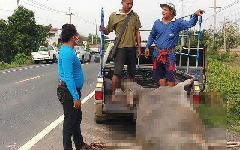 วันที่ 23 เม.ย.63 เมื่อเวลาประมาณ 08.30 น. ร.ต.อ.สวาท รุ่งสันเทีย สารวัตรป้องกัน สภ.เมืองที อ.เมือง จ.สุรินทร์ ได้รับแจ้งเหตุรถขนเครื่องดื่มน้ำอัดลมชนควายตาย 4 ตัวบนถนนสายศีขรภูมิ-สุรินทร์ หลักกิโลเมตรที่ 20 จึงได้เดินทางไปตรวจสอบที่เกิดเหตุพบรถยนต์บรรทุกเครื่องดื่มน้ำอัดลม หมายเลขทะเบียน 94-8024 กรุงเทพมหานคร สภาพรถด้านหน้าพังเสียหายและมีเศษขี้ควายติดอยู่ตรงบริเวณด้านซ้ายของรถจอดอยู่บนถนน พบควายเพศเมียอายุราว 4 ปีและ 5 ปีจำนวน 3 ตัวถูกรถชนเข้าไปที่ลำตัวและหัวตลอดจนที่สะโพก ส่วนเพศผู้อายุราว 9 เดือนถูกชนกระเด็นไปตกกลางทุ่งนาตายรวมกันทั้งหมด 4 ตัว