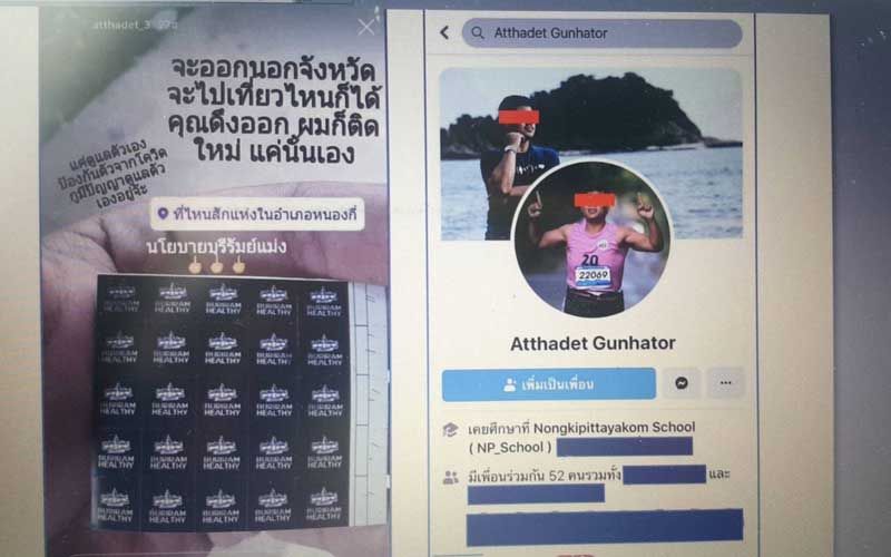 ชุดปราบโควิดบุรีรัมย์ รวบหนุ่มนักศึกษา โพสต์ข้อความบิดเบือนมาตรการสติกเกอร์ Buriram Healthy “จะออกนอกจังหวัด ไปเที่ยวไหนก็ได้ คุณดึงออก ผมก็ติดใหม่ แค่นั้นเอง” เป็นการแสดงออกถึงการต่อต้านมาตรการควบคุมโรคติดต่อเชื้อไวรัสโควิด-19 ถูกดำเนินคดีฐานนําเข้าสู่ระบบคอมพิวเตอร์ซึ่งข้อมูลอันเป็นเท็จ เจ้าตัวอ้างคึกคะนอง