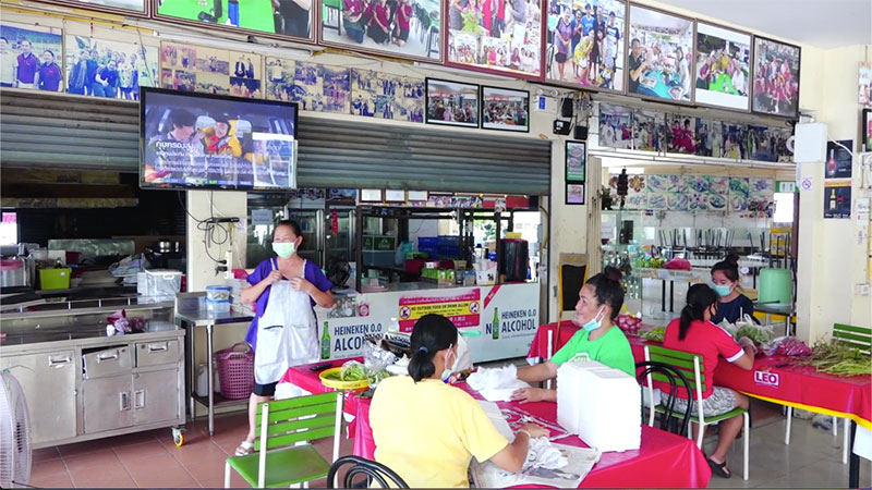 ขณะที่ร้านอาหารก็กลับมาเปิดให้บริการอีกครั้งเช่นกัน และลูกค้าเข้ามาใช้บริการนั่งรับประทานภายในร้านถึงแม้วันนี้เป็นวันแรกอาจมีจะลูกค้าไม่มากนัก ซึ่งได้จัดโต๊ะสำหรับที่นั่งของลูกค้า เว้นระยะห่างตามกำหนด ซึ่งภายในร้านมีพื้นที่กว้างสามารถจัดหลายโต๊ะ ขณะที่ลูกค้าก็ต้องล้างมือด้วยเจลแอนกอฮอล์