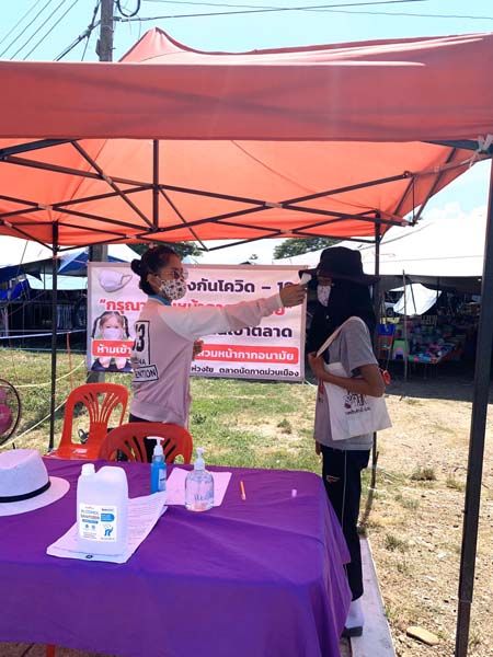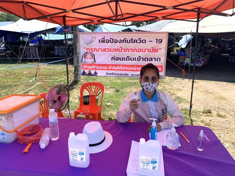 ทั้งนี้ ทางคณะกรรมการควบคุมโรคติดต่ออำเภอสันติสุข ได้มาตรวจแนะนำตลาด และประชาสัมพันธ์ให้ความรู้เกี่ยวกับโรคโควิด-19 และทางผู้จัดตลาดนัดได้ดำเนินการตามคำแนะนำของคณะกรรมการควบคุมโรคติดต่ออำเภอสันติสุข โดย 1.ปิดกั้นทางเข้ารอบๆตลาดนัด ให้มีทางเข้าออก ทางเดียว 2.มีการตรวจคัดกรองวัดไข้ด้วยเครื่องวัดอุณหภูมิ และเช็ดมือด้วยแอลกอฮอล์เจลก่อนเข้าตลาดนัด 3.ผู้ใช้บริการและผู้ขายใส่หน้ากากอนามัยทุกคน 4.การเว้นระยะห่างของผู้คน 5.การทำความสะอาดตลาดนัด ทั้งนี้ เพื่อให้การค้าขายกลับมากระตุ้นเศรษฐกิจ ซึ่งการเปิดการค้าขายช่วงแรกนั้น มีการวางมาตรการเรื่องการเว้นระยะห่าง และคัดกรองการเข้าซื้ออาหารอย่างเข้มงวด