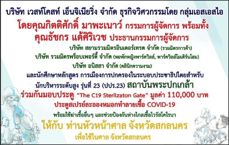 ทั้งนี้ จะได้นำส่งมอบสิ่งของ ตุ้ปันสุข นายมนต์สิทธิ์ ไพศาลธนวัฒน์ ผู้ว่าราชการจังหวัดสกลนคร ในเวลา 09.00 น.ที่บริเวณอาคารศาลากลางจังหวัดสกลนครต่อไป