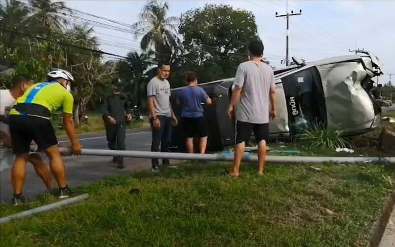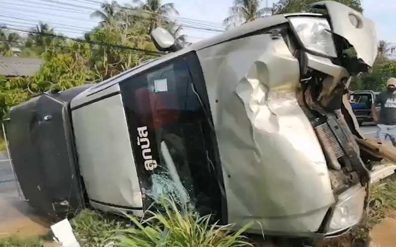 ส่วนคนขับชื่อ น.ส.วิมลรัตน์ ชูเชิด อายุ 44 ปี ปลอดภัยไม่ได้รับบาดเจ็บแต่อย่างใด และยังอยู่ในที่เกิดเหตุ สอบถามทราบว่า ก่อนเกิดเหตุรับคนงานมาจาก ต.ปากระวะ อ.ระโนด จะไปส่งที่โรงงานไทยยูเนียน ซึ่งเป็นโรงงานแปรรูปอาหารทะเล ที่ ต.วัดขนุน อ.สิงหนคร แต่เมื่อมาถึงจุดเกิดเหตุยางแตกและพวงมาลัยสะบัดและควบคุมรถไม่อยู่ทำให้เสียหลักพุ่งขึ้นเกาะกลางถนนชนเสาไฟฟ้าและพลิกคว่ำ ก่อนที่จะถึงโรงงานประมาณ 10 กิโลเมตร แต่โชคดีที่ขับมาไม่เร็วคนงานแค่บาดเจ็บเท่านั้น ตำรวจจึงลงบันทึกไว้เป็นหลักฐานและจะสอบสวนดำเนินคดีอีก