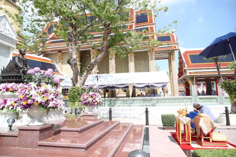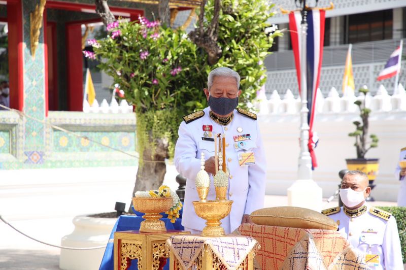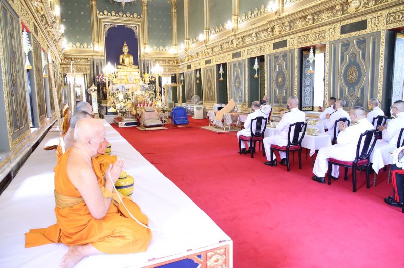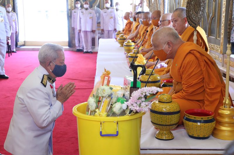 ผู้แทนพระองค์ จุดเทียนที่ครอบพระกริ่งทำน้ำพระพุทธมนต์ แล้วถวายแด่ สมเด็จพระวันรัต เสร็จแล้ว ผู้แทนพระองค์ ถวายสำรับภัตตาหารแด่ สมเด็จพระวันรัต ประธานสงฆ์ สำรับภัตตาหาร นอกนั้น ทรงพระกรุณาโปรดเกล้าโปรดกระหม่อมให้ ข้าราชบริพารผู้ใหญ่ประเคน ตามลำดับ เมื่อพระสงฆ์ฉันเสร็จแล้ว ผู้แทนพระองค์ กล่าวคำถวายสังฆทาน และถวายเครื่องสังฆทานพระราชทานแด่ สมเด็จพระวันรัต เครื่องสังฆทานนอกนั้น ทรงพระกรุณาโปรดเกล้าโปรดกระหม่อมให้ ข้าราชบริพารผู้ใหญ่ประเคน ตามลำดับ ผู้แทนพระองค์ กรวดน้ำ พระสงฆ์อนุโมทนา ถวายอดิเรก ผู้แทนพระองค์ กราบที่หน้าเครื่องนมัสการ และกราบลา สมเด็จพระวันรัต ประธานสงฆ์ จากนั้น ออกจากพระอุโบสถวัดราชบพิธสถิตมหาสีมาราม เดินทางกลับ