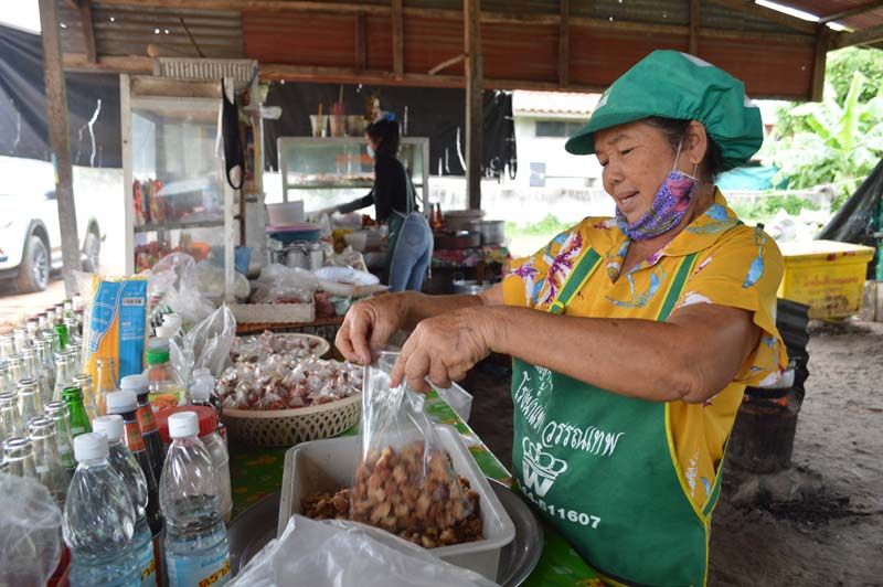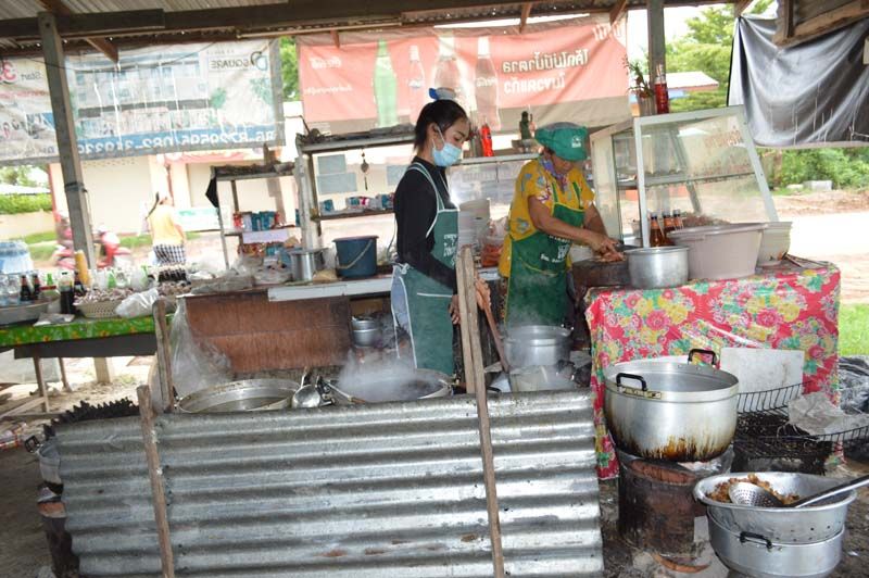นอกจากก๋วยจั๊บแล้วยังมีอาหารตามสั่งและส้มตำ ซึ่งมีนางหน่อย เอี่ยมสะอาด อายุ 44 ปี เป็นน้องสาวตน ช่วยกันทำเองทั้งหมด ทั้ง พริกก็บดเอง พริกไทยก็ซื้อมาเลือกมาล้างแล้วนำไปจ้างบดให้ จึงทำให้เครื่องปรุงสดใหม่ และในช่วงเศรษฐกิจช่วงนี้ ก็ขายน้อยลงแต่ยังโชคดีว่าที่ค่าเช่าที่ไม่แพงมาก วันไหนเหนื่อยก็หยุด อยู่อย่างพอเพียง ไม่ได้มากมาย ทำแต่พออยู่ได้ ช่วงแรกขายได้วันละ เส้นเล็ก-เส้นใหญ่ 5 กิโลกรัม ก็ขายหมด แต่มาช่วงนี้ต้องเพิ่มเส้นขึ้นมา แม้หมูแดงยังต้องเพิ่ม 20 กิโลกรัม/วันเลย