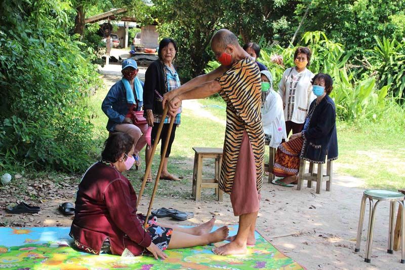 นายจรัญ กล่าวอีกว่า จากการเข้าตรวจสอบของเจ้าหน้าที่ นายสังข์ทอง เจ้าของสถานที่ ยังให้การบำบัดรักษาอาการเจ็บป่วยตามร่างกายให้กับชาวบ้าน ประมาณ 10 คน ที่เดินทางมาจากหลายหมู่บ้านตามกรรมวิธีของตนตามปกติ ทั้งนี้ จากการสอบถามนายสังข์ทองและชาวบ้าน ทราบว่าเป็นการบำบัดรักษาตามกรรมวิธีของแพทย์แผนไทยหรือหมอโบราณ โดยไม่มีพฤติกรรมหลองลวงประชาชน ในส่วนของการแต่งกายดูคล้ายพระภิกษุนั้น นายสังข์ ระบุว่าเป็นความชอบส่วนบุคคล เนื่องจากเคยบวชมาหลายพรรษา จึงชอบแต่งกายแบบนี้ เพราะความเคยชินและคล่องตัวดี แต่ไม่เคยเอาผ้าเหลืองไปแอบอ้างในทางทุจริต ทั้งนี้ จากการตรวจสอบไม่มีส่วนใดเข้าข่ายผิดกฎหมายหรือหลอกลวงประชาชน
