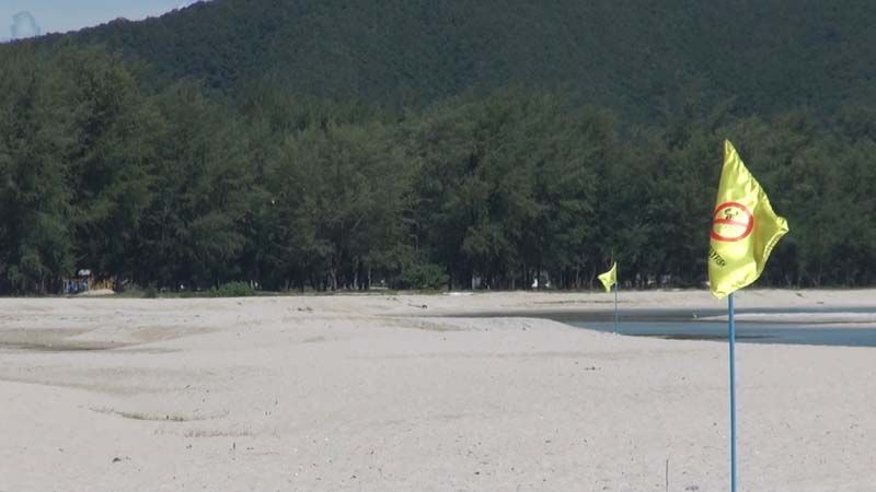 8 กรกฎาคม 2563 ที่บริเวณชายหาดชลาทัศน์และชายหาดสมิหลา อ.เมือง จ.สงขลา สภาพอากาศในวันนี้ทะเลเรียบไม่มีคลื่นลม ท้องฟ้าโปร่งใส ทางเทศบาลนครสงขลาได้นำธงสีเหลืองมาปักแทนธงสีแดง ซึ่งหมายถึงสามารถลงเล่นน้ำทะเลได้เนื่องจากไม่มีคลื่นลม แต่ที่ธงสีเหลืองมีข้อความแจ้งเตือนเป็นรูปแมงกะพรุน อยู่ภายในวงกลมสีแดงคาดแมงกะพรุน และมีข้อความว่า beware of jellyfish ระวังแมงกะพรุน ติดที่ธงสีเหลืองทุกผืน ที่ปักตามแนวชายหาดชลาทัศน์และชายหาดสมิหลา เพื่อแจ้งเตือนประชาชนที่จะนำบุตรหลานลงเล่นน้ำทะเลเนื่องจากในช่วงนี้ทะเลเรียบเหมาะที่จะลงเล่นน้ำทะเล แต่ให้ระมัดระวังแมงกะพรุนพิษ บริเวณชายฝั่งริมชายหาดขณะลงเล่นน้ำทะเล