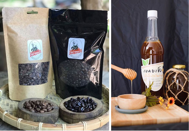 ผลิตภัณฑ์ชุมชนในกลุ่มตลาดนัดเอนจี้ของดีทั่วไทยล้วนเป็นสินค้าเลืองชื่อและมีคุณภาพของแต่ละชุมชน เช่น กาแฟดอยแม่ส้าน อ.แม่เมาะ จ.ล าปาง กาแฟอาราบิก้าจากเขาหินปูนแดนภูเขาไฟรอบโรงไฟฟ้า แม่เมาะ ท าให้แรกสัมผัสรสที่โคนลิ้นให้ความรู้สึกละมุนอโรม่านุ่มลึก เม็ดมะม่วงหิมพานต์ เขื่อนสิริกิติ์ จาก กลุ่มวิสาหกิจชุมชนกลุ่มส่งเสริมอาชีพบ้านหาดไก่ต้อย จ.อุตรดิตถ์ แหล่งผลิตเม็ดมะม่วงหิมพานต์ที่ดีที่สุดแห่ง หนึ่งของประเทศไทย ท าให้มีรสชาติหวาน มัน เนื้อแน่น อร่อย ปัจจุบันยังพัฒนาเม็ดมะม่วงหิมพานต์ให้มีความ หลากหลายทั้งรสต้มย า รสบาบีคิว รสปาปิก้า เครื่องลาบกะเหรี่ยง เขื่อนวชิราลงกรณ จากวิสาหกิจชุมชน บ้านหินแหลม ซึ่งน าเครื่องเทศมะสะหล่ะจากพม่า สมุนไพรเทียนตาตั๊กแตน พริกกะเหรี่ยง และกะปิจากปลา ผสมผสานเป็นเครื่องลาบกะเหรี่ยงสูตรต้นต ารับดั้งเดิมของชาติพันธุ์กะเหรี่ยง สบู่ขมิ้นชัน เขื่อนรัชชประภา จากวิสาหกิจชุมชนกลุ่มสมุนไพรบ้านทุ่งตาหนอน จ.สุราษฎร์ธานี ที่คัดสรรขมิ้นชันคุณภาพแปรรูปเป็น "สบู่ ขมิ้นชัน" ที่เต็มไปด้วยสารสกัดเคอร์คูมิน ช่วยลดอาการอักเสบ พองบวมจากโรคต่างๆ ชาใบขลู่ โรงไฟฟ้าบาง ปะกง จากวิสาหกิจชุมชนภูมิปัญญาชายฝั่งทะเลต าบลคลองต าหรุ จ.ชลบุรี สมุนไพรจากป่าชายเลนท้องถิ่น ของอ าเภอบางปะกง สามารถใช้ชงดื่มแทนชา มีสรรพคุณในการขับปัสสาวะช่วยขับสารพิษและลดอาการบวม น้ า ลดความดันโลหิต ลดน้ าตาลในเลือด และมีสารต้านอนุมูลอิสระ น้ าหมากเม่า โรงไฟฟ้าพลังน้ าภาค ตะวันออกเฉียงเหนือ จากบ้านโนนหัวช้าง จ.สกลนคร ที่คัดสรรผลหมากเม่าสดคุณภาพจากเทือกเขาภูพานมา แปรูปเป็นน้ าผลไม้พื้นบ้านพร้อมดื่ม รสชาติเปรี้ยวอมหวาน ช่วยคลายร้อน ใช้เป็นยาแก้ร้อนใน ถอนพิษไข้ และช่วยขับถ่ายได้ดี