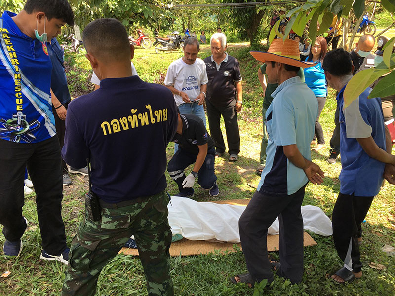 ในที่เกิดเหตุเจ้าหน้าที่ตำรวจพบศพนายอ้อม ทิพย์จำนง อายุ 67 ปี อยู่บ้านเลขที่ 345 หมู่ 9 ต.เขาชัยสน อ.เขาชัยสน จ.พัทลุง นอนเสียชีวิตในสภาพมือด้านขวา และหน้าลำดัวมีร่องรอยไหม้ ผิวหนังดำและถลอก