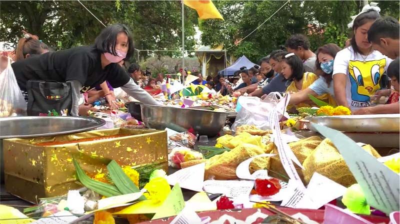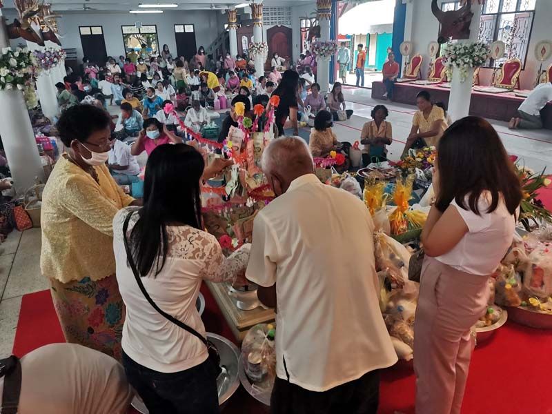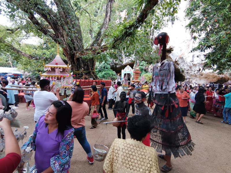 ประเพณีวันสารทเดือนสิบ ของชาวไทยพุทธทางภาคใต้ ประชาชนส่วนใหญ่จะนำ ปิ่นโต ขนมเดือนสิบ อาทิเช่น ขนมต้ม ขนมเทียน ขนมท่อนใต้ ข้าวพอง ขนมลา ขนมบ้า นอกจากนี้ยังมีการวางข้าวสารอาหารแห้ง อาหารคาวหวาน ขนมสารทเดือนสิบ รวมถึงเงินเหรียญและธนบัตร พร้อมเขียนชื่อผู้ที่ล่วงลับ ญาติ บรรพบุรุษ ใส่ร่วมกับสิ่งของต่างๆ เพื่อนำวางไว้ที่ลาน ชิงเปรต พบว่าในปีนี้มีผู้เข้าร่วมประเพณีวันสารทเดือนสิบกว่าหนึ่งพันคน ทำให้บรรยากาศภายในวัดสุวรรณคูหา เต็มไปด้วยประชาชน และนักท่องเที่ยวชาวต่างชาติที่เข้ามาเที่ยวภายในวัด