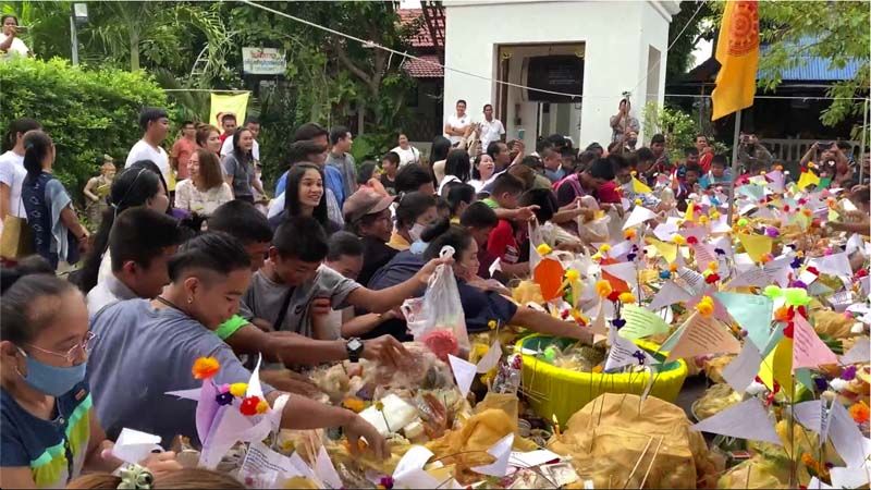 จากนั้นได้ร่วมทำบุญตักบาตรเพื่อเป็นการอุทิศส่วนกุศลแก่บรรพชน การทำบุญวันสารทเดือนสิบ หรืองานบุญส่งตายายของชาวเกาะสมุย ถือเป็นการทำบุญสำคัญที่ลูกหลานที่อยู่ตามสถานที่ต่างๆ จะเดินทางกลับมาร่วมพิธี เพราะเชื่อว่าเป็นวันส่งบรรพชนที่ล่วงลับไปแล้วกลับสู่ภพภูมิ ชาวบ้านเกาะสมุยเรียกวันนี้ว่า " วันส่งตายาย " หลังจากเสร็จสิ้นพิธีสงฆ์แล้วบรรดาเด็กๆ และผู้ใหญ่ต่างได้ร่วมกันชิงเปรตโดยวัดได้จัดโต๊ะสำหรับตั้งสำรับอาหารคาวหวานเต็มโต๊ะที่ลูกหลานนำมาร่วมทำบุญ การชิงเปรตถือเป็นอีกกิจกรรมหนึ่งของงานบุญส่งตายาย และการชิงเปรตเพื่อเป็นการสื่อถึงการทำทานให้กับเปรตและสัมพเวสีทั้งหลายที่มารับส่วนบุญ ซึ่งบรรยากาศเป็นไปอย่างสนุกสนานที่เด็กๆ ต่างรอคอย โดยทุกคนได้เตรียมถุงพลาสติกมาใส่สิ่งของที่ตัวเองชื่นชอบกลับบ้าน