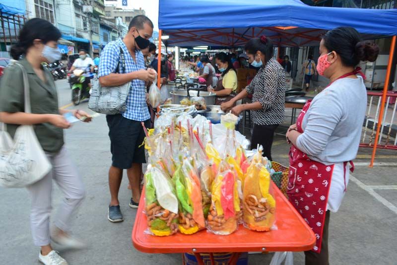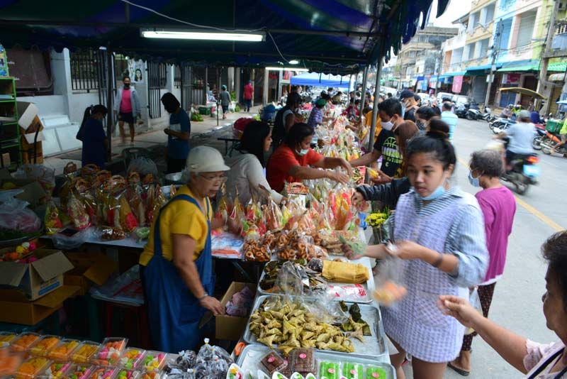 ขณะที่แม่ค้าขายขนมเดือนสิบ บอกว่า ถึงราคาแป้งข้าวเจ้า ใบกระพ้อ ใบตอง จะปรับราคาขึ้น แต่ก็ยังคงขายราคาเท่าเดิม โดยขนมพอง ขนมเจาะรู ขนมบ้า และ ขนมเทียม จะขายในราคาถุงละ 40 – 50 บาท ส่วนขนมต้มหรือข้าวเหนียวต้ม ก็จะขายในราคามัดละ 20 บาท โดยในปีนี้บรรยากาศ และจำนวนประชาชนจะไม่มากเท่าปีที่ผ่านมา เนื่องจากสภาวะเศรษฐกิจที่ฝืดเคืองประกอบกับอยู่ในช่วงการระบาดของโควิด-19 ด้วย