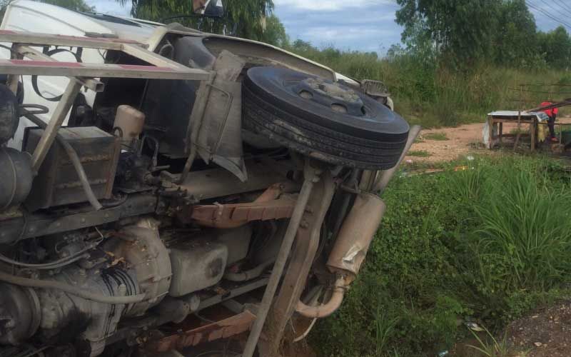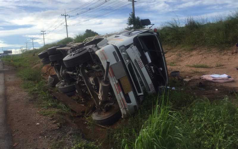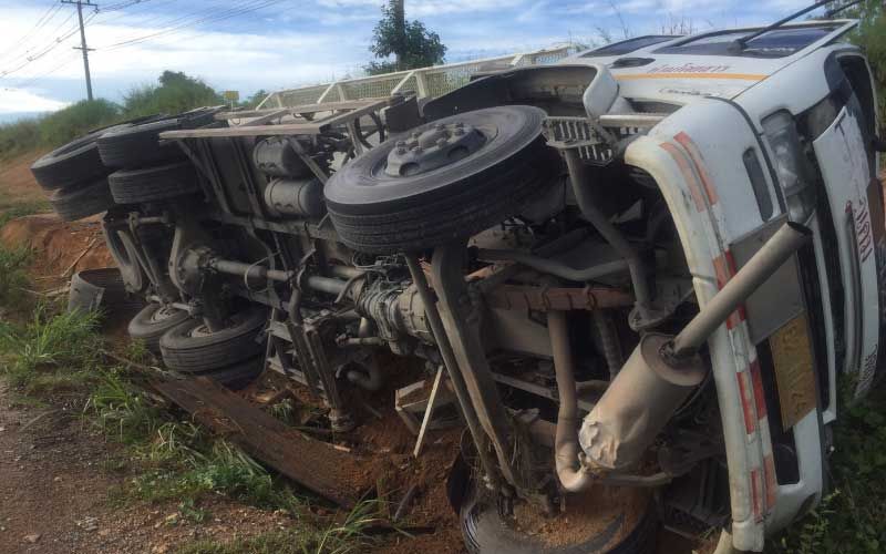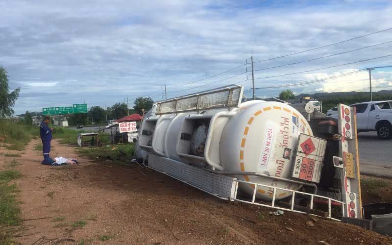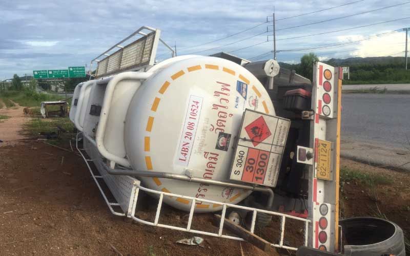 ที่เกิดเหตุ พบรถบรรทุกพ่วง 10 ล้อ ยี่ห้ออีซูซุ สีขาว หมายเลขทะเบียน 62-1124 กรุงเทพมหานคร เป็นรถบรรทุกเคมี ประเภท ไฮโดคาร์บอน วัตถุอันตรายไวไฟพลิกคว่ำอยู่ข้างทาง ภายในถังบรรจุเคมีนั้นมีวัตถุไวไฟ บรรจุอยู่เต็มถัง มีนายเอกชัย สำเภาลอย อายุ 32 ปี เป็นคนขับ เล่าว่า ตนเองได้บรรทุกสารเคมีดังกล่าวมาจากจังหวัดระยองและจะนำไปส่งที่จังหวัดสมุทรปราการเมื่อมาถึงบริเวณดังกล่าวรู้สึกวูบ มารู้ตัวอีกทีรถลงไปข้างทางแล้วโชคดีขับมาไม่เร็ว เจ้าหน้าที่ตำรวจต้องกันคนและรถเป็นการชั่วคราว เนื่องจากเกรงว่าจะเกิดอันตรายกับผู้ใช้เส้นทางดังกล่าวในช่วงชั่วโมงเร่งด่วน เพื่อป้องกันอันตราย