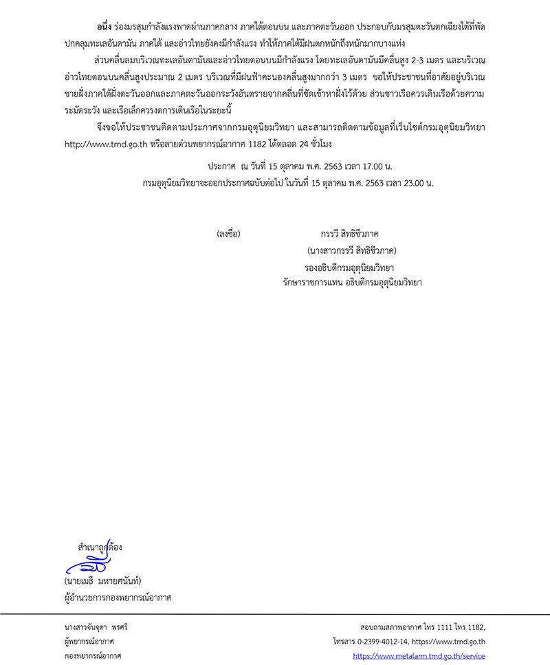 กรมอุตุนิยมวิทยาจะออกประกาศฉบับต่อไป ในวันที่ 15 ตุลาคม พ.ศ. 2563 เวลา 23.00 น.
