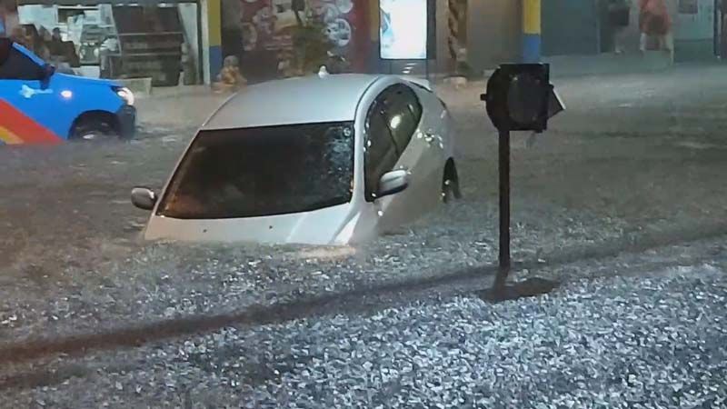 โดยเฉพาะที่บริเวณสามแยกถนนสุรนารี หน้าโรงแรมโตเกียว ระดับน้ำท่วมขังสูงประมาณ 40-50 เซนติเมตร น้ำได้ดันแผ่นเหล็กที่วางทับชั่วคราวทับท่อระบายน้ำหลุดออกจากพื้นผิวถนน เนื่องจากมีการวางสายไฟฟ้า โทรศัพท์ สายอินเตอร์เน็ท และสายส่งเคเบิ้ลท้องถิ่นทำให้รถยนต์เก๋งคันหนึ่ง เกิดอุบัติเหตุล้อรถด้านหน้าพลัดตกลงไปในท่อระบายน้ำหัวรถจมน้ำมิดท้ายรถเก๋งชี้ฟ้าได้รับความเสียหาย โชคดีที่ผู้ขับขี่ไม่ได้รับอันตราย