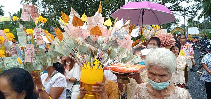 สำหรับพิธีทอดกฐินสามัคคีปีนี้ ทางวัดเขาพระทองกำหนดขึ้นตลอดทั้งวัน เริ่มตั้งแต่ช่วงเช้า หม่อมราชวงศ์สมลาภ กิตติยากร และคณะ รวมทั้งชาวพุทธ ร่วมกันประกอบพิธีทางสงฆ์ อาราธนาศีล รับศีล อาราธนาพระปริตร พระสงฆ์ 9 รูป สวดเจริญพระพุทธมนตร์ฉลอง สมโภชองค์กฐิน จากนั้นช่วงบ่ายมีพิธีแห่ขบวนองค์กฐินมาศาลาเฉลิมพระเกียรติ เพื่อประกอบพิธีทอดกฐิน ทอดผ้ากฐินถวายแด่พระภิกษุสงฆ์ หลังเสร็จสิ้นพิธีทอดกฐินวัดเขาพระทอง แจกหัวนะโมที่ปลุกเสกตามพิธีโบราณ ตามความเชื่อว่าสามารถปัดเป่าป้องกันโรคโควิด- 19 ให้กับชาวพุทธที่มาร่วมงานบุญทอดกฐินครั้งนี้ทุกคน