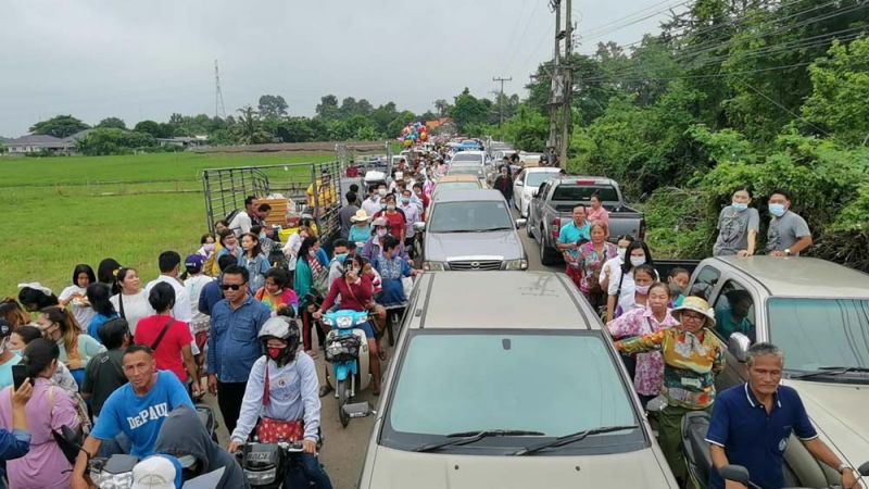 โดยที่บรรยากาศตั้งแต่ช่วงเช้าเวลาประมาณ 07.00 น. ประชาชนจากจังหวัดต่างๆ และจากในพื้นที่ของจังหวัดราชบุรี ได้แห่กันเดินทางมาที่วัดท่ามะเฟือง โดยนำอาหาร เครื่องดื่ม และขนมหวาน รวมไปถึงผลไม้ เพื่อมาเลี้ยงผู้ที่เดินทางมาทำบุญ ส่งผลทำให้การจราจรเกิดการติดขัดยาวกว่า 3 กิโล และถนนทางเข้าสู่วัด ซึ่งเป็นถนนที่สัญจรภายในหมู่บ้านเกิดการติดขัดทุกสาย รถไม่สามารถสัญจรสวนทางกันได้ ทำให้เจ้าหน้าที่ต้องเร่งระบายรถ ส่วนสถานที่จอดรถเต็มทุกพื้นที่ ทำให้ประชาชน จำเป็นต้องจอดรถข้างทางและบางรายถึงกลับต้องกลับรถและเดินทางกลับทันที สาเหตุรอนานนับชั่วโมง รถไม่ขยับ จนช่วงสายเจ้าหน้าที่ด้านจราจรต้องปรับเส้นทางเดินรถให้เดินทางเดียวและไม่ให้นำรถเข้าไปจอดตามไหล่ทางเพื่อแก้ปัญหารถตดขัด