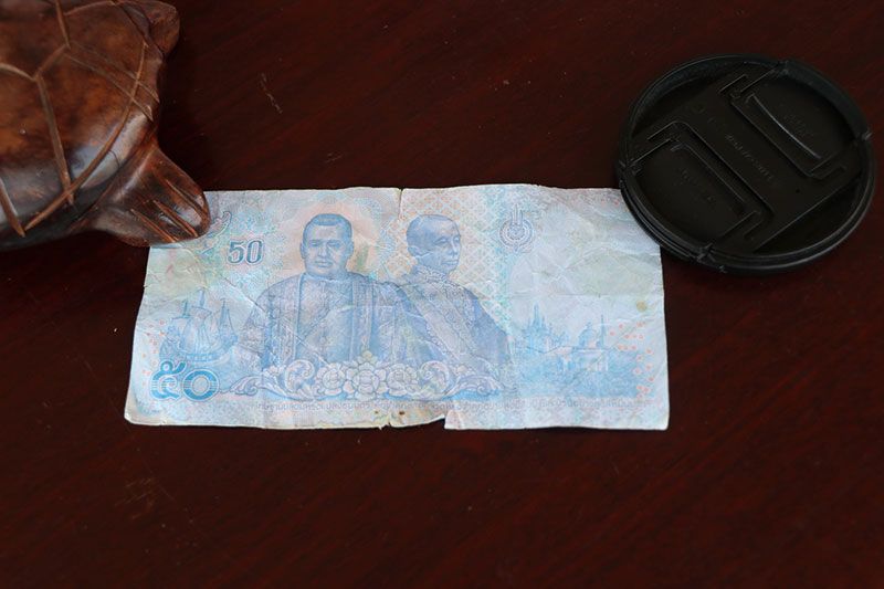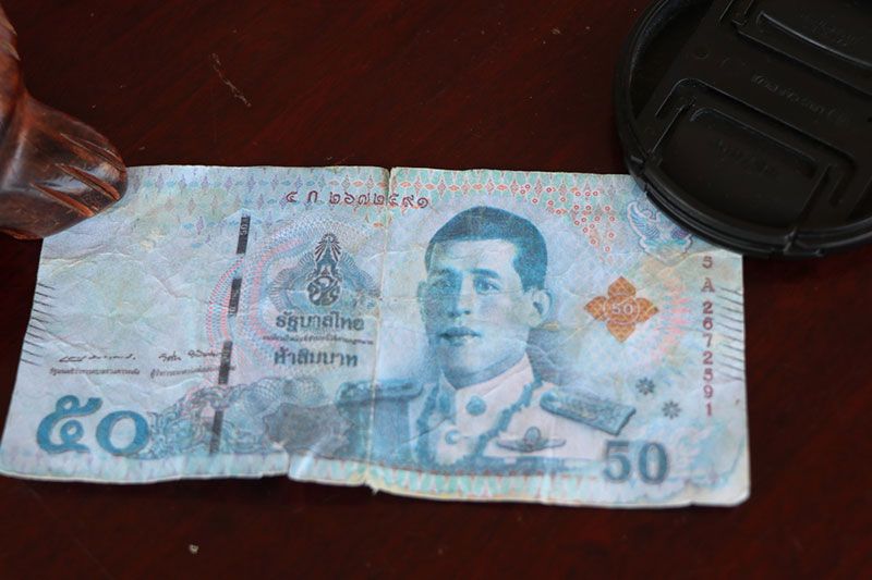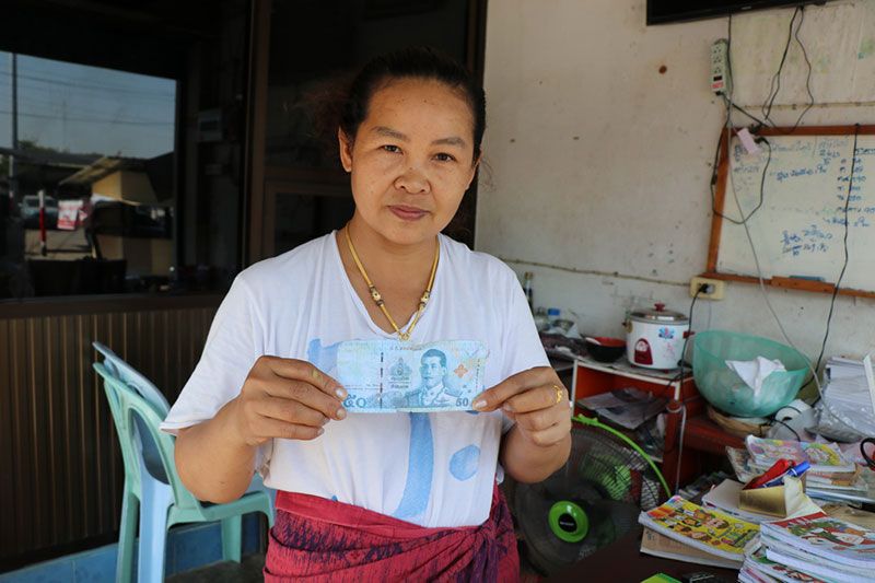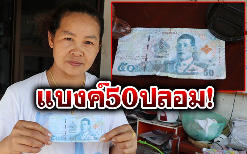 จาการตรวจสอบเบื้องต้น ลักษณะของธนบัตร 50 ปลอมนั้น เป็นกระดาษไม่เป็นมัน แถบพลาสติกเคลือบสีน้ำเงินที่ฝังไว้ในเนื้อกระดาษธนบัตรตามแนวยืน ไม่มีลายน้ำที่พระบรมฉายาสาทิสลักษณ์ พระบาทสมเด็จพระเจ้าอยู่หัวฯ สีจะตกกระดาษเปื่อยยุ่ยง่าย ทางเจ้าหน้าที่ตลาดได้ประกาศเตือนภัย ให้พ่อค้าเม่ค้าได้ตรวจสอบเงินให้ดีก่อน เพราะตอนนี้ธนบัตร 50 ปลอม มาโผล่ที่ตลาดอ่างทองแล้ว