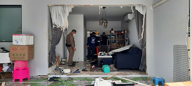 16 ธันวาคม 2563 เมื่อเวลา 13.30 น. ร.ต.อ.ศราวุธ เสริมกลิ่น พงส.สภ.สาขลา ได้รับแจ้งว่ามีเหตุแก็สระเบิดภายในหมู่บ้าน ชิวาโฮม สุขสวัสดิ์-ประชาอุทิศ ซอยแยกที่ 5 ภายในซอยประชาอุทิศ 90 หมู่ที่ 2 ต.บ้านคลองสวน อ.พระสะมุทรเจดีย์ จ.สมุทรปราการ มีผู้ได้รับบาดเจ็บสาหัสจำนวน 2 ราย จึงรายงาน พ.ต.อ.ธนูเพชร ฉมาฤกธิ์ ผกก.สภ.สาขลา ทราบก่อนเดินทางไปตรวจสอบพร้อมด้วยรถกู้ชีพ อบต.บ้านคลองสวน รถน้ำดับเพลิง อบต.บ้านคลองสวนและอาสาสมัครมูลนิธิร่วมกตัญญู