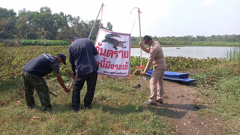 นายวัลลภ ประวัติวงศ์ นายอำเภอกบินทร์บุรี กล่าวว่าในเบื้องต้นได้หารือทางกำนันและเทศบาลซึ่งมีสองกระแสคือให้ดำเนินการจับแล้วนำไปปล่อยที่ศูนย์วิจับจระเข้ จังหวัดนครสวรรค์ และส่วนที่สอง ชาวบ้านอยู่ที่นี่มา 20 กว่าปีแล้วถ้าเราจับไปก็จะเป็นการรบกวนสัตว์ แล้วจระเข้ที่นี่ไม่มีประวัติการทำร้ายผู้คนเบื้องต้นได้ดำเนินการติดป้ายแจ้งเตือนและให้กำนันผู้ใหญ่บ้านประชาสัมพันธ์ทางเสียงตามสายแล้วอนาคตข้างหน้าถ้าเราไม่ได้จับไปก็ขอให้ทางเทศบาลตั้งงบประมาณในการจัดทำรั้วทำป้ายถาวรและให้เขามีชีวิตอยู่ด้วยกันได้