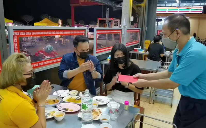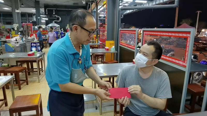 จากสถานการณ์การแพร่ระบาดของเชื้อไวรัสโคโรน่า 2019 ระลอกใหม่ ทำให้ร้านประสบปัญหาอย่างมาก ลูกค้าลดน้อยลง แต่ก็ต้องอยู่ให้ได้ เพราะเรามีลูกน้อง มีครอบครัวที่ต้องดูแล ซึ่งในเดือนนี้เป็นเดือนของเทศกาลตรุษจีน ตนจึงอยากคืนกำไรลูกค้า และ อยากให้กำลังใจกับลูกค้าที่มาอุดหนุนที่ร้าน ได้จัดแคมเปญ นั่งกินหรือซื้อกลับบ้าน แจกอังปัง คืนกำไรลูกค้า “ร่วมฉลองรับตรุษจีน เราจะผ่านพ้นโควิดไปด้วยกัน” คือลูกค้ากินอิ่มแล้วได้อังเปา ซึ่งเรากำหนดกติกาไว้ ลูกค้าต้องนั่งกินที่ร้าน หรือ ลูกค้าที่มาซื้อที่หน้าร้าน เท่านั้น โดย ทานอาหารครบ 200 บาท รับ อั่งเปา 40 บาท ทานครบ 500 บาท รับ อั่งเปา 100 บาท และ รับประทานอาหารครบ 1,000 บาท รับ อั่งเปา 200 บาท ทุกบิล รับได้ทุกวัน ตั้งแต่วันที่ 1-28 กุมภาพันธ์ 2564 ซึ่งเป็นการสร้างความฮือฮาให้กับลูกค้าที่มาอุดหนุนอย่างมาก