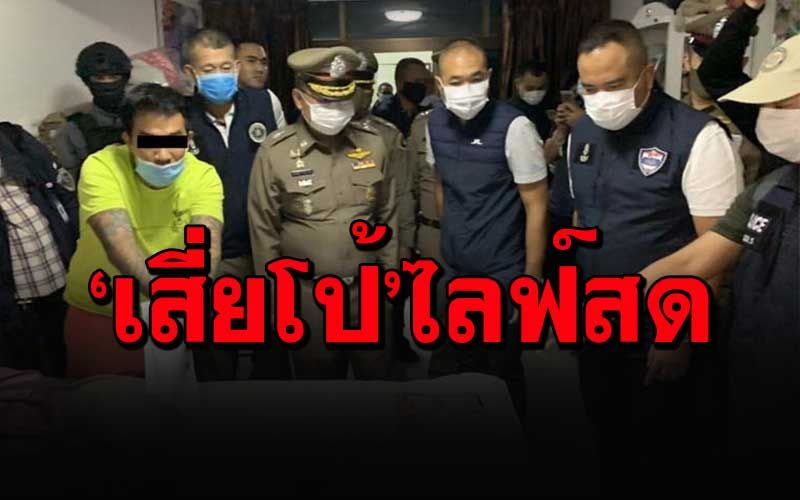 ปรากฏว่า บนหน้าเพจเฟชบุ๊กของนายเสี่ยโป้ ได้ไลฟ์สดนาทีชุดหนุมานกองปราบ บุกจับกุมคาบ้านย่านเพชรเกษม ในข้อหาร่วมกันจัดโฆษณาชักชวนให้ผู้อื่นเล่นการพนัน (พนันออนไลน์) และสมคบกันให้มีการเล่นพนันออนไลน์