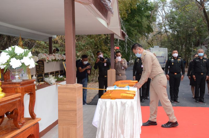 8 ก.พ.64 ที่วัดป่าศรัทธารวม ตำบลหัวทะเล อำเภอเมือง จ.นครราชสีมา หลวงพ่อกัณหา สุกาโม เจ้าอาวาสวัดป่ามรัพทวีธรรมธาราม อ.วังน้ำเขียว , นายวิเชียร จันทรโณทัย ผู้ว่าราชการจังหวัดนครราชสีมา ประธานประกอบพิธีบำเพ็ญกุศลพิเศษบังสกุลอุทิศส่วนกุศลให้กับผ็เสียชีวิตในเหตุการณ์กราดยิงเมื่อวันที่ 8-9 ก.พ. 2563 ร่วมกับพล.ต.เสาวราช แสงผล รองแม่ทัพภาคที่ 2 , นายวัชรพล โตมรศักดิ์ ส.ส.นครราชสีมา ตัวแทนนายสุวัจน์ ลิปตพัลลภ อดีตรองนายกรัฐมนตรี โดยมีคณะสงฆ์ 30 รูปสวดบังสุกุล สวดอภิธรรม พร้อมมีญาติผู้วายชนได้ร่วมกันการวางผ้าไตรจีวรให้กับผู้เสียชีวิต จำนวน 9 รายที่เสียชีวิต โดยในจำนวนนี้มีการนำรูปภาพผู้วายชน 3 ภาพ พร้อมเถ้ากระดูกใส่ในเชิงตะกอนมาวางบริเวณแท่น ซึ่งหลวงพ่อกัณหาฯได้เดินใช้ไม้เท้าขนาดยาวเคาะศีรษะให้กับญาติและครอบครัวผู้เสียชีวิตทุกคน ท่ามกลางความเศร้าโศกเสียใจ ซึ่งทุกคนยังทำใจไม่ได้ หลายคนนั่งน้ำตาไหลนองหน้ายังจำเหตุการณ์เหมือนเพิ่งเกิดขึ้นมาไม่นานนี้ และทุกคนขอจดจำเหตุการณ์นี้ไว้ตลอดชีวิต โดยภายหลังเสร็จพิธีได้ร่วมกันถ่ายภาพหน้าสถานที่บรรจุเถ้าอัฐิผู้เสียชีวิตร่วมกัน