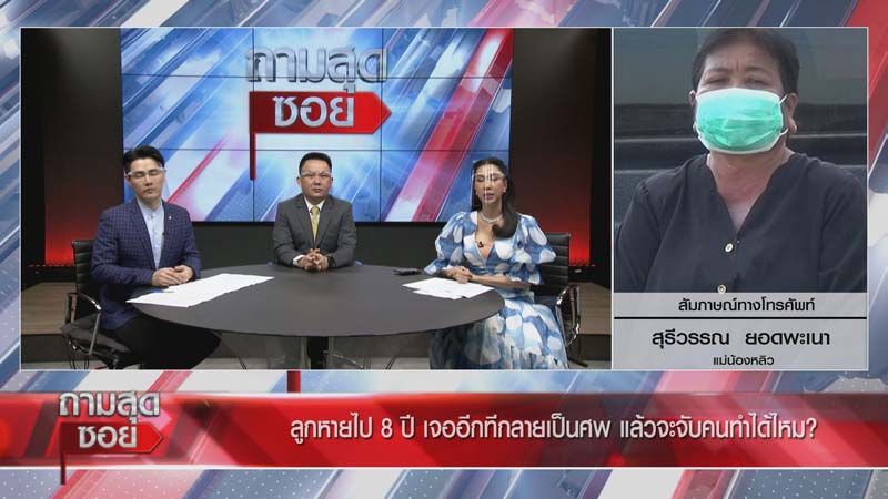 รายการ "ถามสุดซอย" ออกอากาศวันจันทร์-ศุกร์ เวลา 10.10-11.00 น. ทางช่องเนชั่น ช่อง 22 ดำเนินรายการโดย "เอิ๊ก พรหมพร ยูวะเวส" และ "นภัส ธีรดิษฐากุล" วันนี้ (17 ก.พ.) สัมภาษณ์ "รศ.นพ.วีระศักดิ์ จรัสชัยศรี" แพทย์ผู้เชี่ยวชาญด้านนิติเวชศาสตร์ มศว. พร้อมโฟนอินเปิดใจ "สุรีวรรณ ยอดพะเนา" แม่ "น้องหลิว" ลูกที่หายตัวไปจากบ้านตั้งแต่ปี 55 แม่พยายามตามหาในช่วง 8 ปีที่ผ่านมา ก่อนพบอีกทีกลายเป็นศพไปแล้ว