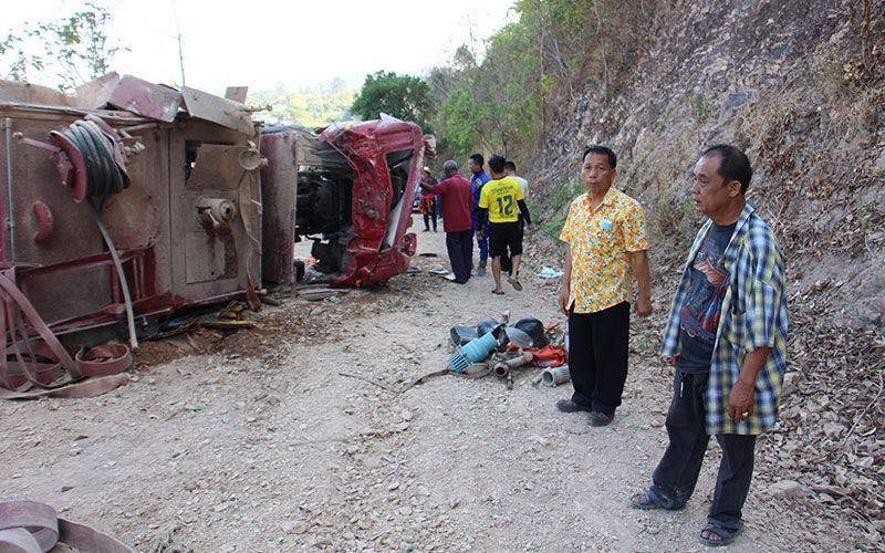 นายปรีชา เริ่มภักตร์ อดีตนายกเทศมนตรีเทศบาลตำบลห้วยชินสีห์ เปิดเผยว่า ได้รับแจ้งจากผู้ใหญ่บ้านว่ามีรถเทศบาลตำบลห้วยชินสีห์ พลิกคว่ำอยู่บนเขาหลวง จึงได้เดินทางมาดูที่เกิดเหตุ แต่ไม่ได้เข้ามากำกับดูแลเหตุการณ์เพราะเนื่องจากว่าหมดวาระการเป็นนายกแล้ว มีเหตุเพลิงไหม้ป่าอยู่บนเขาหลวง ซึ่งจะเกิดอยู่ทุกปี วันนี้มีรถดับเพลิงจากเทศบาลตำบลห้วยชินสีห์ รถดับเพลิงจากท้องถิ่นใกล้เคียง มาช่วยดับเพลิงร่วมกับทหารจากกองคลังแสงที่ 6 ซึ่งรถของเทศบาลฯ ได้ขับขึ้นบนภูเขาเพื่อสกัดเพลิงที่ลุกไหม้ป่า ขณะช่วงขาลงเขาอาจจะเป็นด้วยเส้นทางลาดชัน หรือเป็นเพราะระบบเบรกมีปัญหา จึงทำให้เกิดอุบัติเหตุขณะรถกำลังลงจากเขาจนพลิกคว่ำ จนมีพนักงานเทศบาล 2 คนได้รับบาดเจ็บ