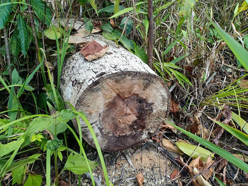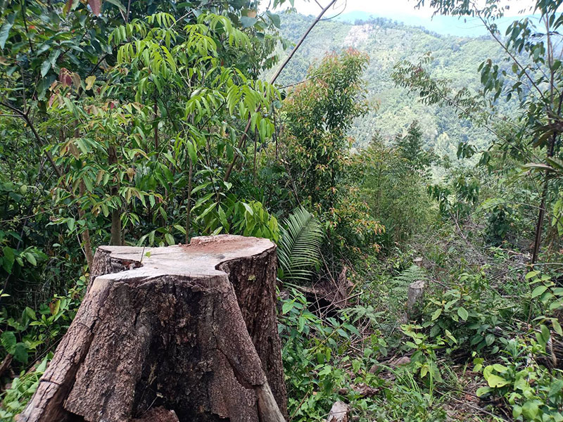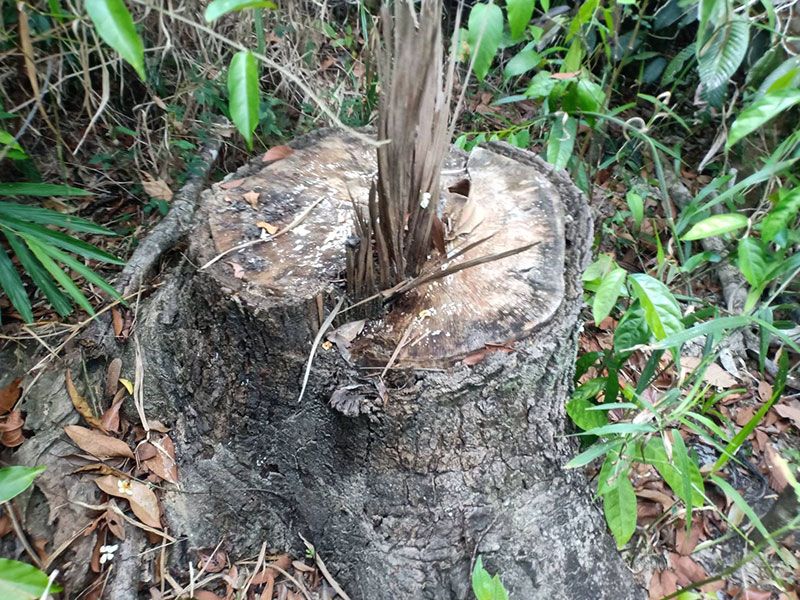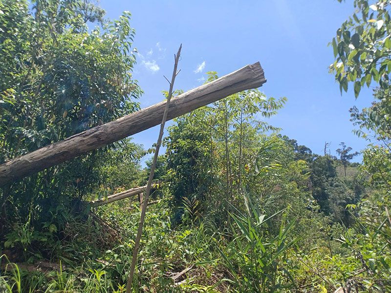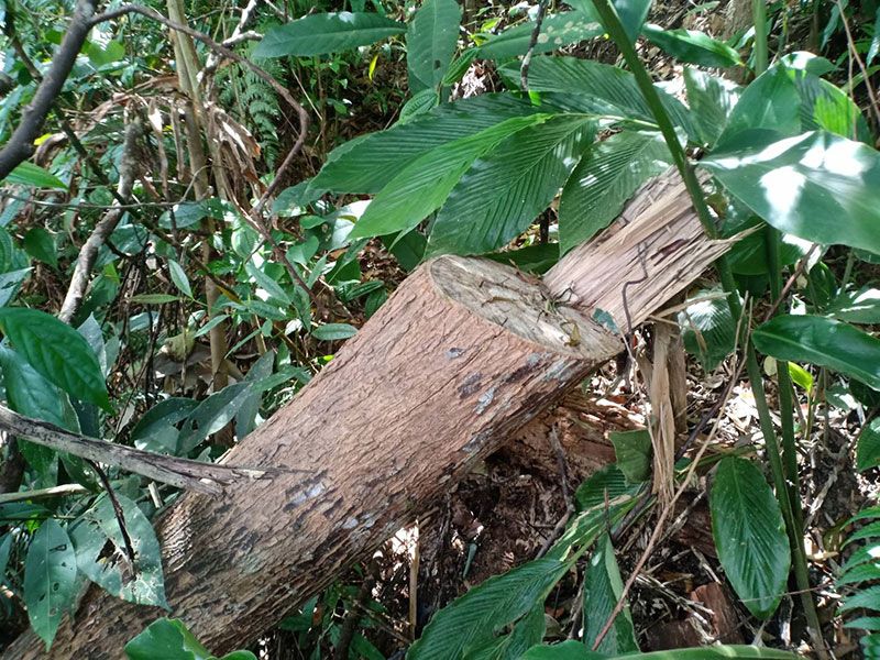 ตรวจพบพื้นที่ป่าไม้สมบูรณ์ถูกลักลอบทำลายมาแล้วประมาณ 1-2 ปี แล้วมีการลักลอบแผ้วถางป่าใหม่จนถึงปัจจุบัน ต้นไม้มีค่ายืนต้นขนาดกลาง-ขนาดเล็ก ถูกตัดด้วยเครื่องเลื่อยโซ่ยนต์ล้มคาตอไม่ได้ตรวจยึดปล่อยให้ผุเปื่อยไปตามธรรมชาติ ต้นไม้มีค่ายืนต้นขนาดเล็ก ไม้พื้นล่าง วัชพืช ถูกตัดฟันด้วยมีดพร้า ไม่เผาทำลาย แล้วถูกต้นทุเรียนขนาดเล็กทั้งแปลง ตรวจวัดพื้นที่ป่าไม้ถูกทำลายได้จำนวน 31-1-21 ไร่ ยึดถือครอบครองเพื่อทำการเกษตร ปลูกทุเรียนขนาดเล็ก