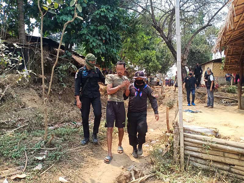 ขณะเกิดเหตุมีเพื่อนบ้านเห็นเหตุการณ์หลายคน จึงทราบได้ง่ายขึ้นว่าผู้ลงมือก่อเหตุนั้นเป็นใคร หลังก่อเหตุนายมอนตึง ได้หลบหนีไปอย่างรวดเร็ว จนกระทั่งวันนี้ 15 มี.ค.มีชาวบ้านมาพบแล้วรีบแจ้งให้เจ้าหน้าที่ทหารพรานมาคุมตัวเอาไว้ จากนั้นจึงประสานให้เจ้าหน้าที่ตำรวจมารับตัวไปทำแผนประกอบคำรับสารภาพก่อนที่จะนำตัวไปดำเนินคดีตามกฎหมาย ส่วนสาเหตุอยู่ระหว่างการสอบสวนของเจ้าหน้าที่