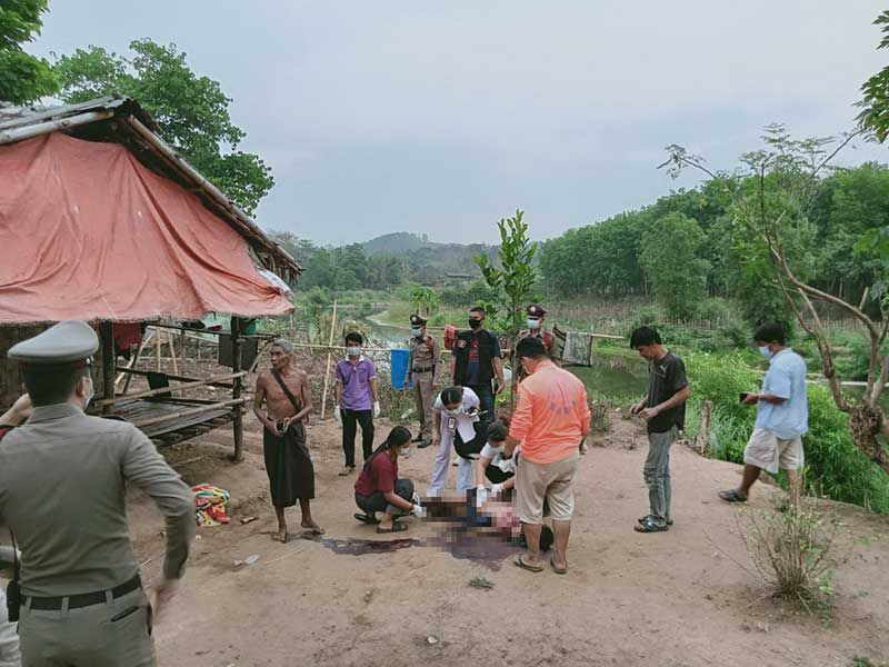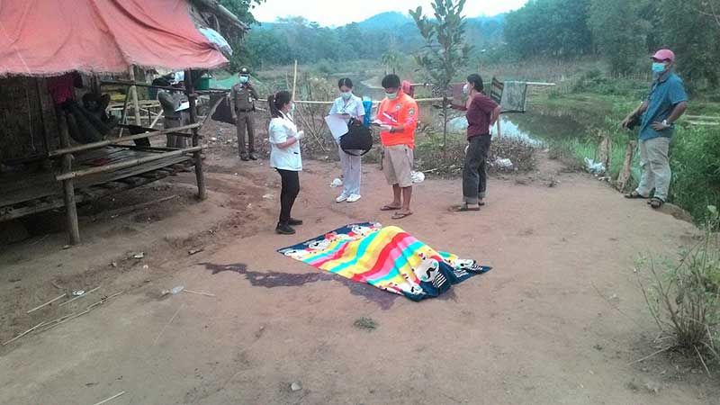 หลังรับแจ้งจึงรายงานให้ผู้บังคับบัญชาทราบ จากนั้นรีบรุดไปตรวจสอบที่เกิดเหตุ พร้อมด้วยเจ้าหน้าที่ตำรวจชุดสืบสวน สภ.สังขละบุรี แพทย์เวร รพ.สังขละบุรี และเจ้าหน้าที่มูลนิธิพิทักษ์กาญจน์ ไปถึงพบผู้เสียชีวิตนอนหงายอยู่กับพื้นดิน มีบาดแผลถูกมีดฟันบริเวณลำคอ 1 แผล และถูกมีดแทง บริเวณลำคออีก 2 แผล คราบเลือดไหลนองเต็มพื้น