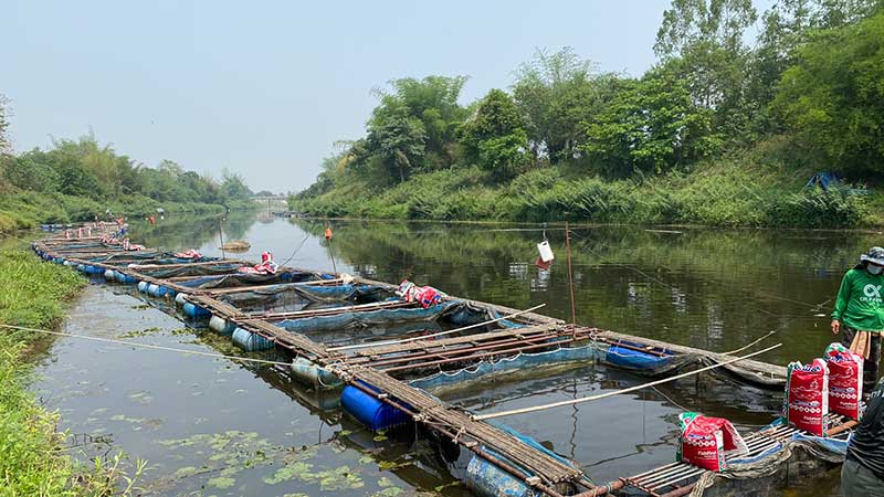 นายอัมไพ แสงคำคูณ อายุ 64 ปี เกษตกรผู้เลี้ยงปลากระชัง เผยว่าตนมีอาชีพเลี้ยงปลากระชังริมแม่น้ำเลย บริเวณบ้านโป่ง ต.นาแขมตนมีกระชังปลา 30 กระชัง มีทั้งหมด 5 รุ่น อายุตั้งแต่ 2 สัปดาห์ ไปจนถึง 5 เดือน พร้อมตักขาย น้ำหนักตัวปลาประมาณ 8 ขีดไปจนถึง โล 2 ขีดมีปลาประมาณ 2 หมื่นกว่าตัว ถ้าตักขายจะได้เงินประมาณ 7 แสนกว่าบาทนี่ตายยกบ่อเลย เอาไม่ทัน เพราะไม่คิดว่าจะขนาดนี้