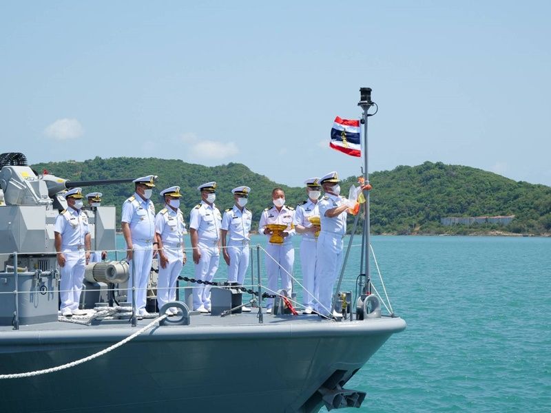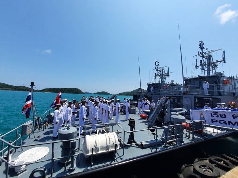 ก่อนหน้านี้เมื่อช่วงเช้า พล.ร.อ.วศินสรรพ์ จันทวรินทร์ ที่ปรึกษาพิเศษกองทัพเรือ ในฐานะประธานกรรมการบริหารโครงการจัดหาเรือตรวจการณ์ใกล้ฝั่ง ร่วมด้วย คณะกรรมการร่วม กองทัพเรือ และบริษัท มาร์ซัน จำกัด (มหาชน) ได้จัดให้มีพิธีบวงสรวง เพื่อความเป็นสิริมงคล ณ ศาลพลเรือเอกพระเจ้าบรมวงศ์เธอ พระองค์เจ้าอาภากรเกียรติวงศ์ กรมหลวงชุมพรเขตอุดมศักดิ์ แหลมปู่เจ้า อำเภอสัตหีบ จังหวัดชลบุรี