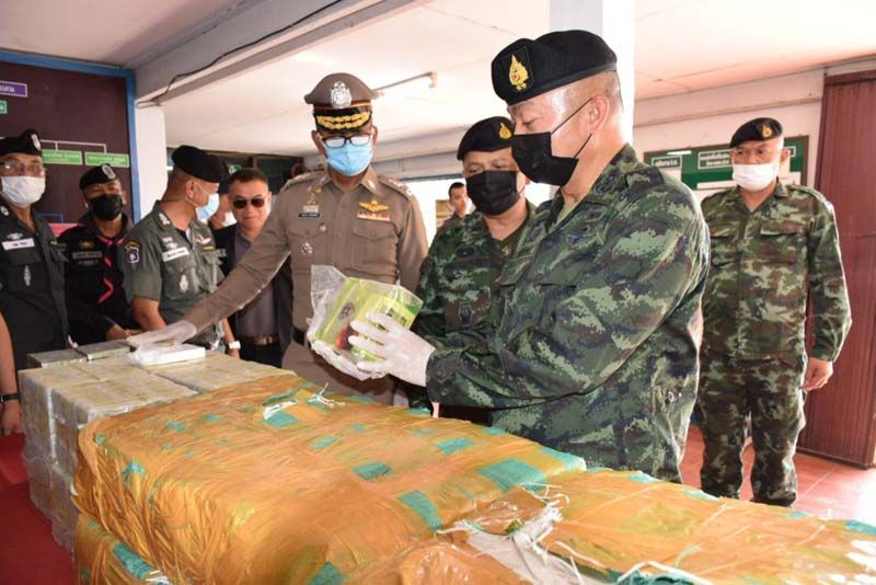 โดยผู้ต้องหาแจ้งว่ายาเสพติดดังกล่าวนายแสน (ผู้ที่หลบหนี) ซื้อมาจากพ่อค้าฝั่ง สปป.ลาว และขณะนี้ได้รับการติดต่อจากกลุ่มผู้ค้ายาเสพติดฝั่ง สปป.ลาว ว่าในวันที่ 31 มีนาคม 2564 ห้วงเวลาแต่ 23.00 น.เป็นต้นไป ทางกลุ่มผู้ค้าฝั่งสปป.ลาว ได้ว่าจ้างให้คนนำยาไอซ์ น้ำหนักประมาณ 240 กิโลกรัม และเฮโรอีน น้ำหนักประมาณ 80 กิโลกรัม จากฝั่ง สปป.ลาว ข้ามมาวางไว้บริเวณจุดเกิดเหตุ