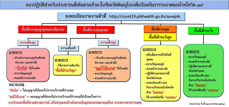 พร้อมกันนี้ได้ออกประกาศให้ผู้เดินทางจากพื้นที่ควบคุม 5 จังหวัด ได้แก่ กรุงเทพมหานคร ปทุมธานี สมุทรปราการ นครปฐม และนนทบุรี เข้าระบบเฝ้าระวังรายงานตัวในแอฟ Save Phitsanulok ไทยชนะ หมอชนะ ให้อยู่ที่บ้าน สังเกตอาการตนเอง หลีกเลี่ยงเดินทางไปในที่ชุมนุม เพื่อเฝ้าระวังป้องกันการแพร่กระจายเชื้อไวรัสโควิด-19 สถานบันเทิงลดเวลาการให้บริการเหลือ 24.00 น.