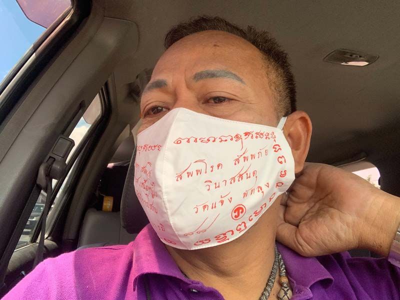 ทั้งนี้ ผู้สื่อข่าวประจำจังหวัดพัทลุงรายหนึ่ง ใส่ออกหน้ากากผ้าที่ปลุกเสกลงยนต์ จนเป็นที่สนใจแก่ผู้พบเห็น โดยระบุว่า หน้ากากผ้าที่ตนใส่เป็นหน้ากากผ้าที่ได้รับการปลุกเสกจาก เกจิอาจารย์ดัง แห่งภาคใต้ นั้นคือ อ.ผ่อง วัดแจ้ง ต.ชัยบุรี จ.พัทลุง ทำการปลุกเสกเพื่อป้องกันโคระบาด โควิด-19 ใส่แล้วรู้สึกสบายใจ และใส่มาตลอด