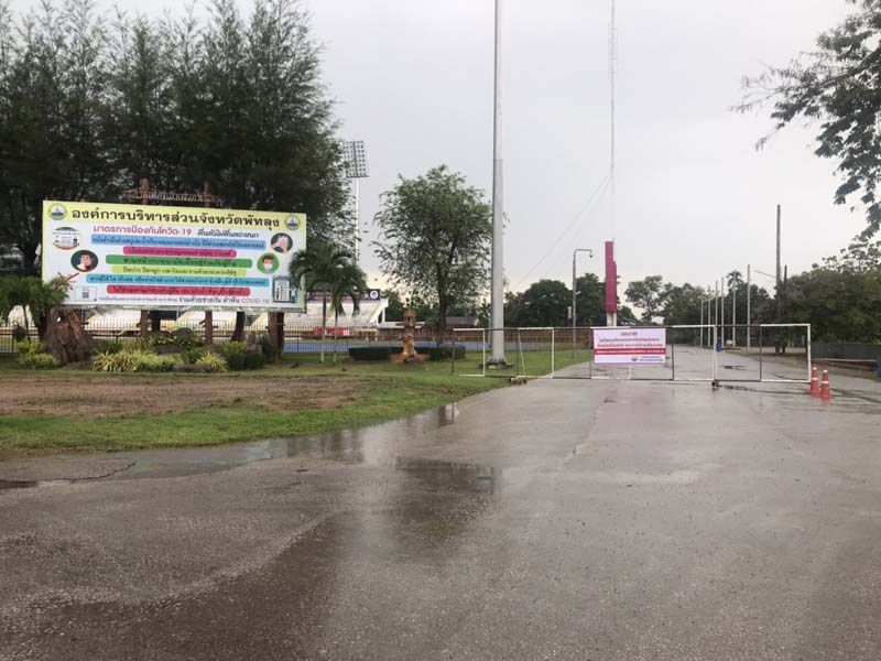 ด้านสนามกีฬากลาง อบจ.พัทลุง ช่วงสายที่ผ่านมา เจ้าหน้าที่ได้พ่นยาฆ่าเชื้อบริเวณรอบๆสนาม และอุปกรณ์การออกกำลังกาย และประกาศงดใช้สนามเป็นเวลา 14 วัน ตั้งแต่วันที่ 28 เมษายน 2564 เป็นต้นไป
