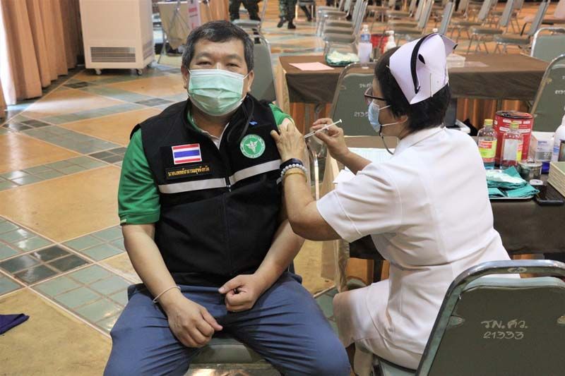 เมื่อวันที่ 28 เมษายน 2564 ที่โรงพยาบาลศรีสังวาลย์ จ.แม่ฮ่องสอน นายสิธิชัย จินดาหลวง ผู้ว่าราชการจังหวัดแม่ฮ่องสอน นางธิติพร จินดาหลวง นายกเหล่ากาชาดจังหวัดแม่ฮ่องสอน นายแพทย์เอกชัย คำลือ นายแพทย์สาธารณสุขจังหวัดแม่ฮ่องสอน , นายแพทย์ชาญชัย พจมานวิพุธ ผู้อำนวยการโรงพยาบาลศรีสังวาลย์ พร้อมคณะผู้บริหาร และบุคลากรทางการแพทย์ ในสังกัดสำนักงานสาธารณสุขจังหวัดแม่ฮ่องสอน เข้ารับการฉีดวัคซีนโควิด-19 ยี่ห้อซิโนแวค เข็มที่ 2 เพื่อสร้างความเชื่อมั่นในคุณภาพของวัคซีนแก่ประชาชน