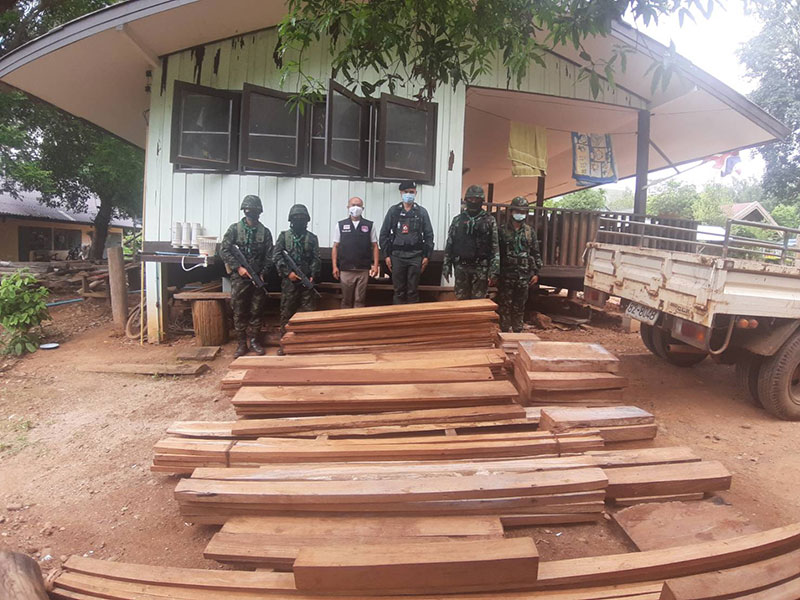 หลังจากตรวจยึดยาบ้าได้แล้ว ผู้ต้องหาที่ล่อซื้อยาบ้า ได้แจ้งเจ้าหน้าที่ว่า พ่อค้ายาบ้าที่ส่งมอบของ มีสวนอยู่ติดกับบริเวณส่งของ เจ้าหน้าที่จึงได้ตามไป พบกระท่อมมีไม้สักแปรรูปตีแปะไว้จำนวนมาก จึงได้ทำการตรวจยึด โดยสามารถยึดไม้สักแปรรูป จำนวน 116 แผ่น ปริมาตร 1.046 ลูกบาศก์เมตร คิดค่าเสียหายของรัฐเป็นเงิน 125,520 บาท