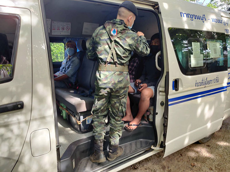 จากนั้นเวลา 07.30 น.วันนี้ (16 พ.ค.) จากนั้นนายหน้าให้วินรถจักรยานยนต์รับจ้างนำบัตรประชาชนคนไทยมามอบให้พวกตน เมื่อได้แล้ว คนขับรถจักรยานยนต์รับจ้างก็นำพาพวกตนมาส่งที่ชายแดน เมื่อมาถึงพวกตนจึงได้ลักลอบเดินข้ามเข้ามายังฝั่งไทยโดยใช้ช่องทางซอยเกษตร เมื่อข้ามมาถึงได้มีคนขับรถจักรยานยนต์รับจ้างมารับพวกตนไปขึ้นรถตู้โดยสารเพื่อเดินทางมุ่งหน้าเข้าตัวจังหวัดกาญจนบุรี เพื่อไปทำงานในพื้นที่จังหวัดชั้นใน ซึ่งทุกคนต้องจ่ายเงินให้กับนายหน้าเป็นเงินคนละ 20,000 บาท ส่วนบัตรประชาชนคนไทย มีเอาไว้แสดงเพื่อตบตาเจ้าหน้าที่ เมื่อมาถึงจุดตรวจ น้ำเกริ๊ก ก็มาถูกเจ้าหน้าที่จับกุมตัวได้เสียก่อน