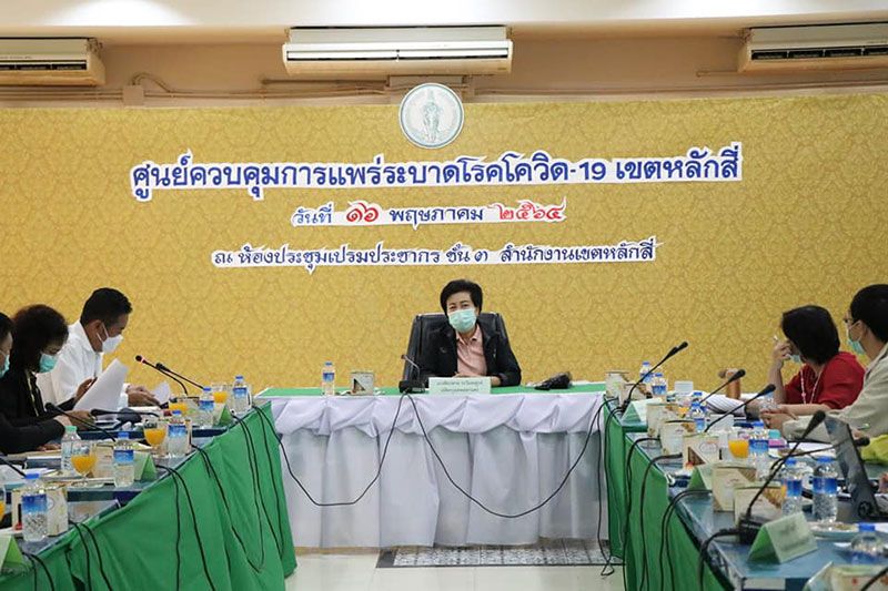 เมื่อเวลา 14.30 น.วันที่ 16 พฤษภาคม 2564 นางศิลปสวย รวีแสงสูรย์ ปลัดกรุงเทพมหานคร เป็นประธานการประชุมศูนย์ควบคุมการแพร่ระบาดโรคโควิด-19 เขตหลักสี่ เพื่อติดตามสถานการณ์การแพร่ระบาดโควิด-19 รวมถึงการป้องกันและควบคุมโรคภายในแคมป์คนงานก่อสร้างบริษัท อิตาเลียนไทย จำกัด (มหาชน) เขตหลักสี่ โดยมี นางวันทนีย์ วัฒนะ รองปลัดกรุงเทพมหานคร นายสมบัติ กนกทิพย์วรรณ ผู้อำนวยการเขตหลักสี่ พร้อมด้วยคณะผู้บริหารเขตหลักสี่ ประธานกลุ่มศูนย์บริการสาธารณสุขกลุ่มกรุงเทพเหนือ และหัวหน้าศูนย์บริการสาธารณสุข 53 ทุ่งสองห้อง และเจ้าหน้าที่ ร่วมประชุม ณ ห้องประชุมสำนักงานเขตหลักสี่