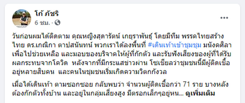 "ไทยสร้างไทย"ลงพื้นที่"ชุมชนหลังบ้านมนังคศิลา" พบผู้ติดเชื้อโควิดจากคลัสเตอร์บ่อนพนันกลางกรุง กว่า 70 ราย