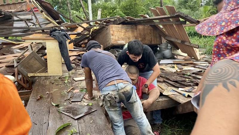 จากการสอบถามนายสมหวัง ชะม้ายกลาง พ่อผู้บาดเจ็บ เล่าว่า ช่วงที่เกิดเหตุตนอยู่ที่บ้านอีกหลังและผู้บาดเจ็บเป็นลูกชายได้โทรหาตนและบอกให้พ่อรีบมาไวๆบ้านล้มทับตนเองทำอะไรไม่ได้เลย ซึ่งพอมาถึงเห็นสภาพบ้านพังเรียกได้ยินแต่เสียง จึงได้ตะโกนบอกให้ลูกใจเย็นๆและได้ประสานเจ้าหน้าที่เข้าช่วยเหลือ