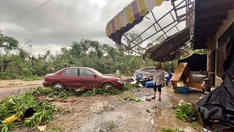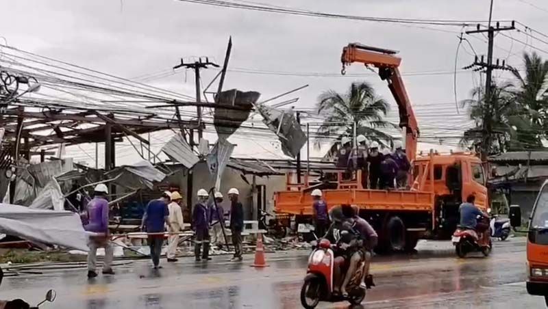 “พายุงวงช้าง” พัดถล่มบ้านเรือนประชาชนเสียหายเป็นวงกว้าง หม้อแปลงระเบิดสายไฟขาดส่งผลให้ไฟฟ้าดับทั้งตำบลบางคล้า