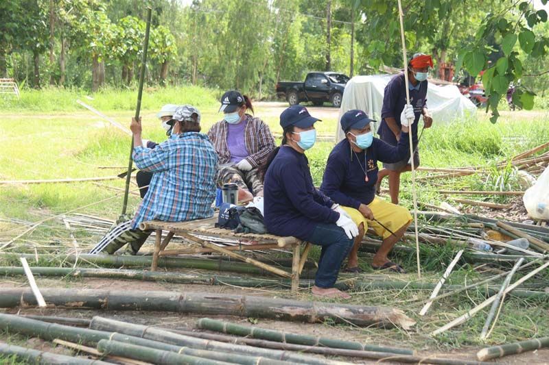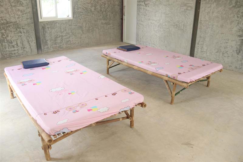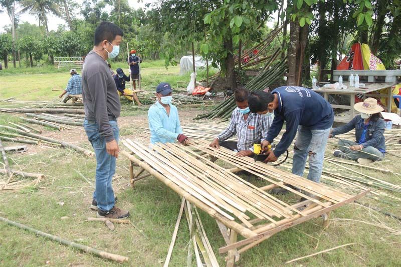 นายสมยศ เอมใจ กล่าวต่อว่า “โดยการทำแคร่ไม้ไผ่ จากตัดไม้ไผ่ ที่ลำต้นมีความแข็งแรง แล้วนำ เจาะรู เพื่อยึดในการทำโครงของแคร่ จากนั้น ทำการนำเศษไม้ ที่ผ่าออกมาเป็นซี่ทำพื้นที่ยึดติดด้วย ตะปู กับโครงสร้าง จนสำเร็จเป็นแคร่ เตียงจากไม้ไผ่ จากนั้นนำเอาที่นอนสำเร็จรูป วางบนแคร่ไม้ไผ่ จนได้ เตียงผู้ป่วยสำหรับโรงพยาบาลสนามใช้เวลา 2 วัน เสร็จเรียบร้อยได้ 20 เตียง การร่วมใจทำแคร่ไม้ไผ่เพื่อใช้เป็นเตียงสนาม นับว่าเป็นการแก้ปัญหาในยามวิกฤติการแพร่ระบาดของ โควิด-19 ด้วยภูมิปัญญาชาวบ้านที่นำไม้ไผ่วัสดุที่มีจำนวนมากในพื้นที่มาใช้ประโยชน์ ลดค่าใช้จ่ายในการซื้อเตียง เนื่องจากการทำแคร่ไม้ไผ่โดยจิตอาสามีต้นทุนเพียงอุปกรณ์เล็กน้อยเท่านั้น ทั้งนี้แคร่ไม้ไผ่ยังสามารถใช้ได้ทุกสถานที่เนื่องจากแคร่ไม้ไผ่มีคุณสมบัติที่ทนทาน แข็งแรง ไม่เสียหายง่าย