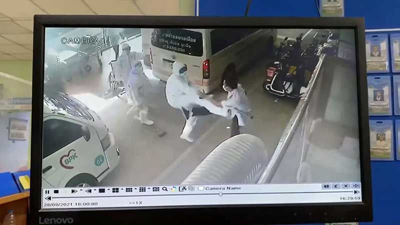 วันที่ 1 กันยายน 2564 เพจเฟซบุ๊ก สมุทรปราการ Press เผยเหตุการณ์จากภาพกล้องวงจรปิด ขณะที่เจ้าหน้าที่กู้ภัยซึ่งสวมชุด PPE ได้ก่อเหตุทะเลาะวิวาทชกต่อยกับเจ้าหน้าที่เวรเปล หน้าห้องฉุกเฉิน พร้อมกับบอกรายละเอียดเกี่ยวกับคลิปว่า ขณะเจ้าหน้าที่กู้ภัยของเทศบาลแห่งหนึ่ง นำผู้ป่วยโควิด มาส่งรักษาตัวที่โรงพยาบาล ต่อหน้าเจ้าหน้าที่เวรเปล บอกกับเจ้าหน้าที่กู้ภัยว่า ในเมื่อแต่งชุด ppe มาแล้วก็ให้ไปส่งถึงห้องผู้ป่วยเลย แต่เจ้าหน้าที่กู้ภัยบอกว่าทำไมโรงพยาบาลไม่จัดการไปส่งเอง จนทำให้เกิดมีปากเสียงและชกต่อยกัน เหตุเกิดเมื่อวันที่ 28 สิงหาคม 2564 ที่ผ่านมา ที่หน้าโรงพยาบาลรัฐแห่งหนึ่งในย่านสมุทรปราการ