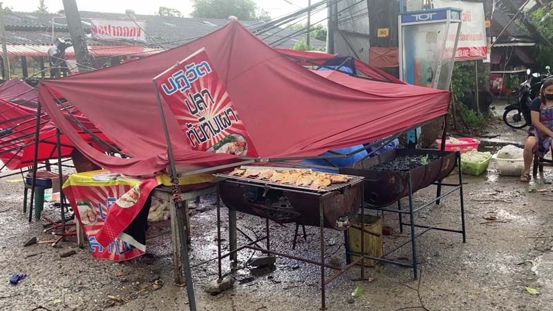 ด้านพ่อค้าแม่ค้าปลาเผาในตลาดปากกอง เล่าว่า ก่อนเกิดเหตุได้เกิดลมพัดอย่างแรง ทำให้พ่อค้าแม่ค้าซึ่งขณะนั้นกำลังจัดข้าวของเตรียมขายให้กับชาวบ้านในช่วงเย็นต่างวิ่งเตลิดไปด้านท้ายตลาด เนื่องจากเกรงว่าจะได้รับอันตรายจากกิ่งต้นยางนาอาจจะตกลงมา ประกอบช่วงเวลาดังกล่าวยังไม่มีชาวบ้านเดินมาจับจ่ายซื้อของ ทำให้ไม่มีใครได้รับอันตราย ส่วนปลาเผาที่เตรียมไว้ขายได้รับความเสียหายทั้งหมดคงต้องนำไปแจกให้กับชาวบ้านที่บางคนอาจไม่มีข้าวกินเย็นนี้